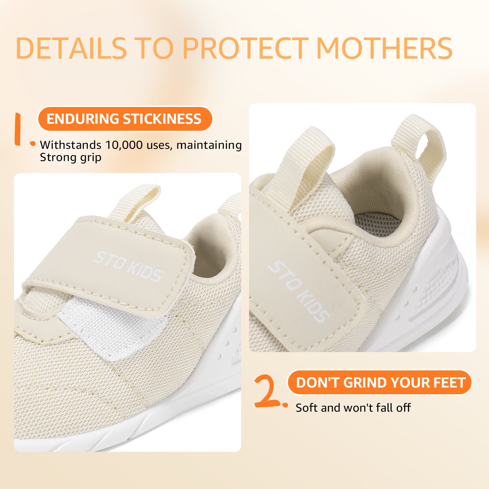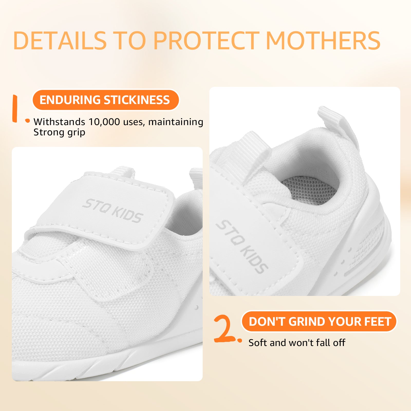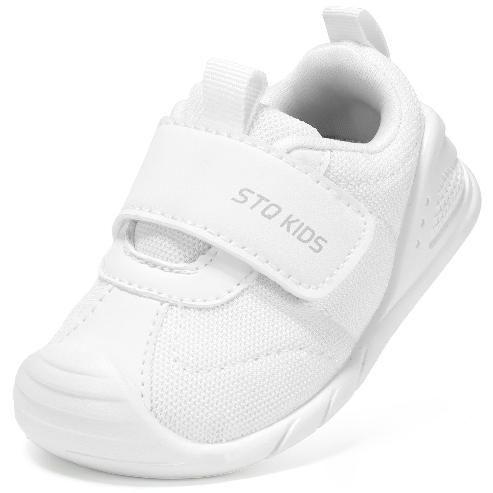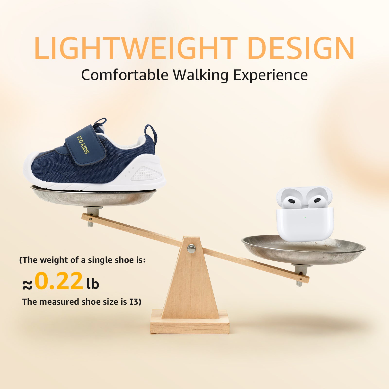 - [ Easy to Wear ]: Toddler walking shoes with adjustable hoop & loop, convenient for parents help infant boy and girl wear wide toe box shoes, also easy for baby on & off by themselves, straps are very secure. Great choice for busy parents give to children