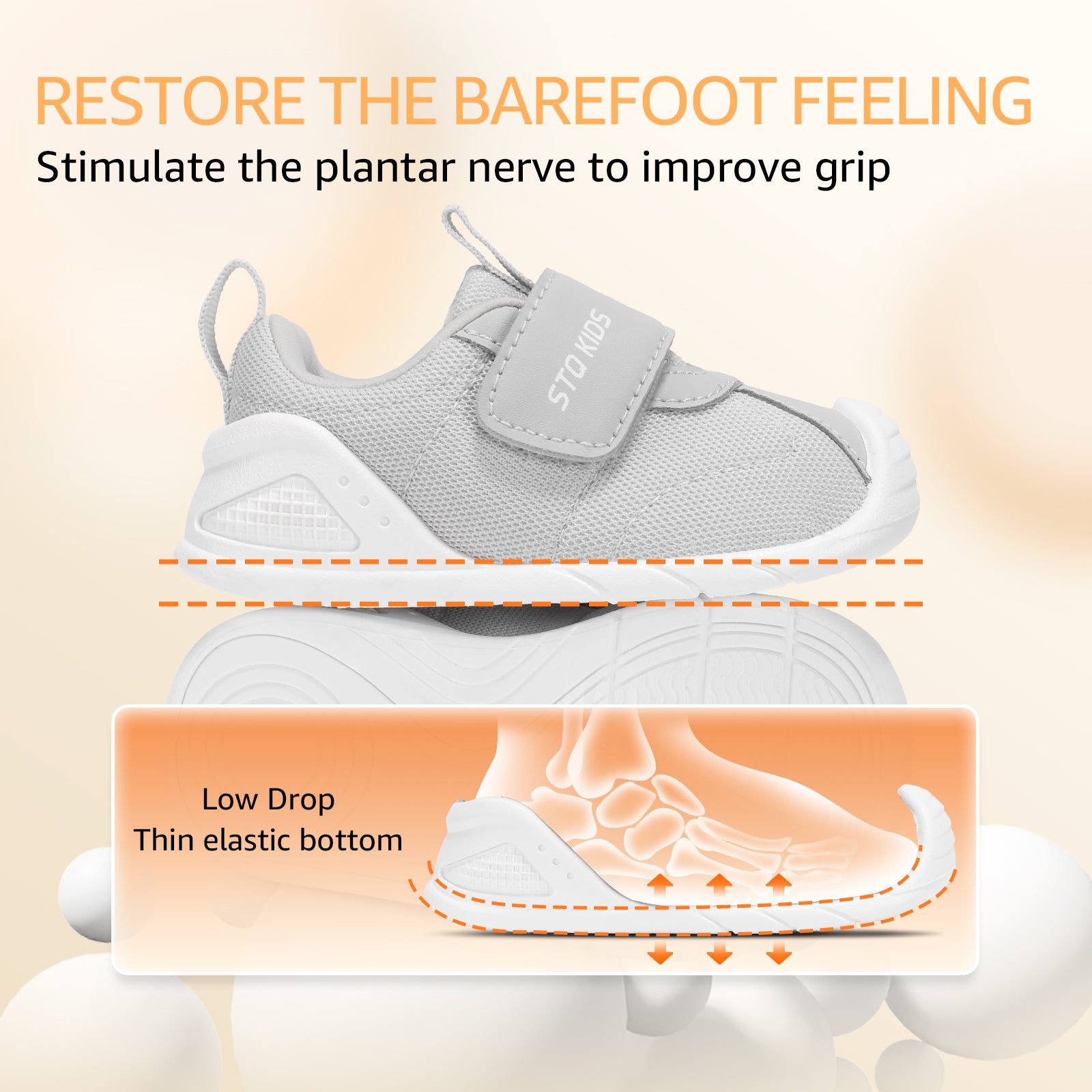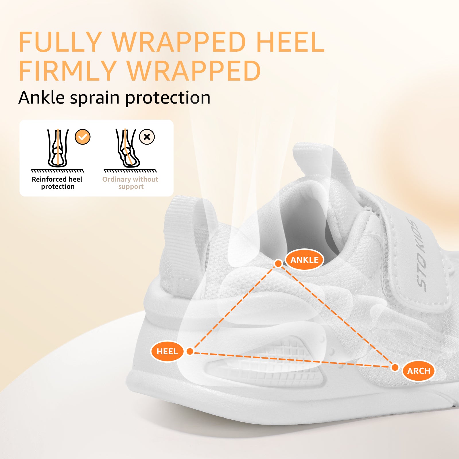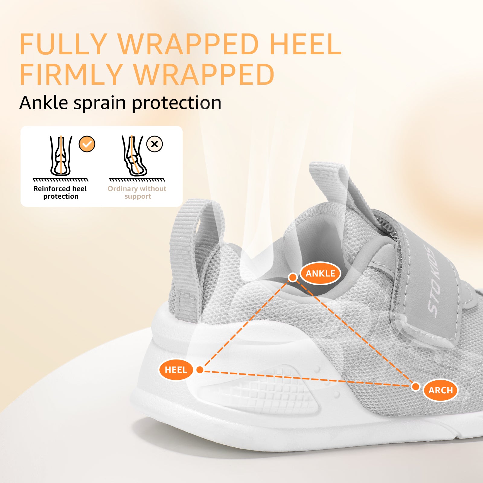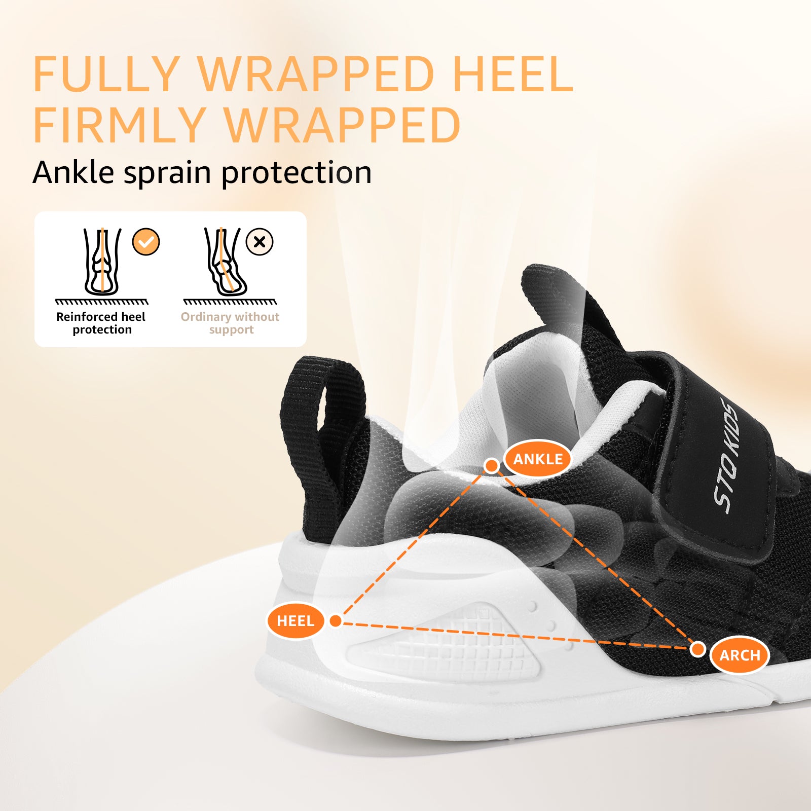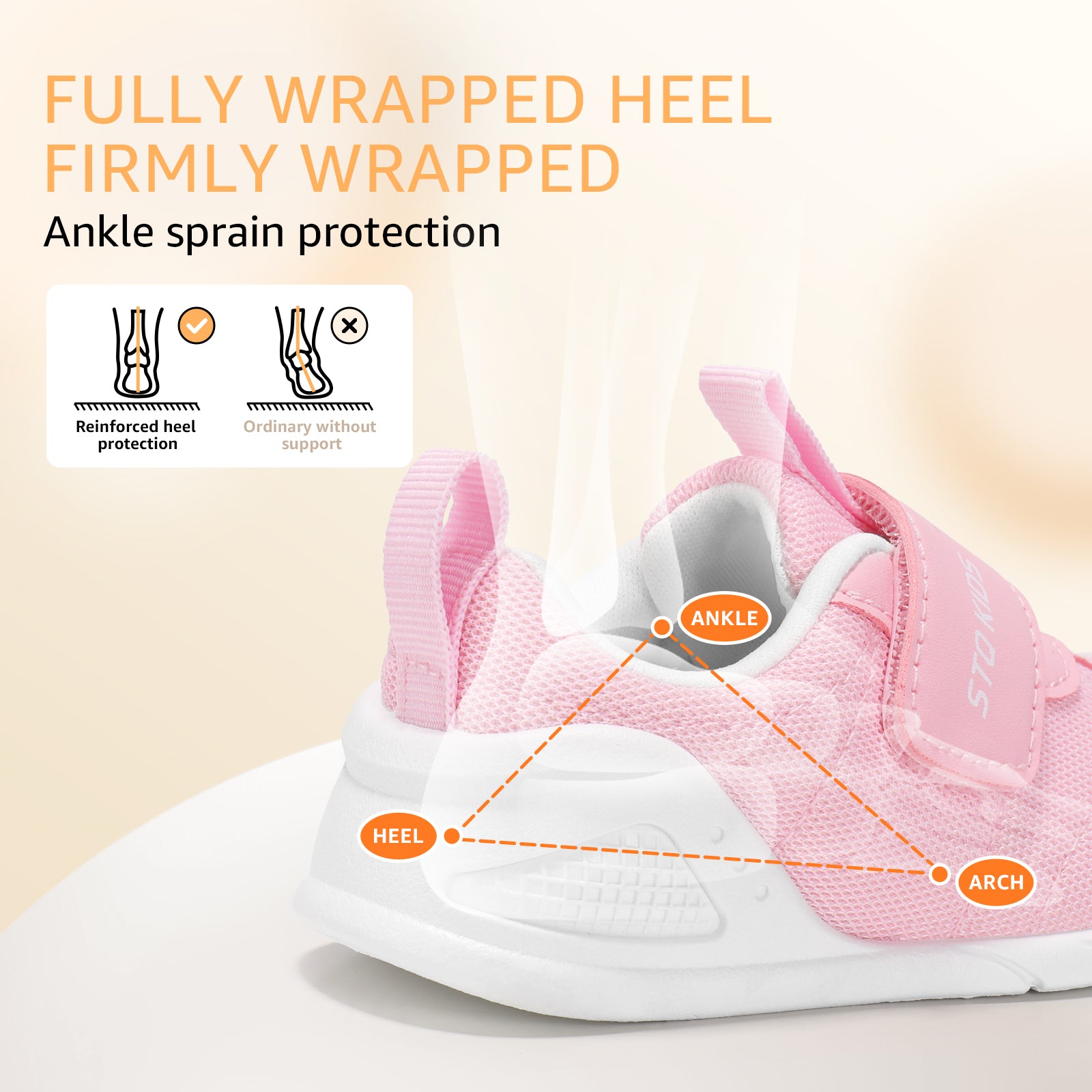 - [ Stabilizing Heel Cup ]: This baby shoes designed for first walking. Flexible sole, natural bending at the 1/3 forefoot aligns with toddlers foot movement, encouraging proper gait. Stabilizing heel cupprevents ankle rolling and supports wobbly walkers