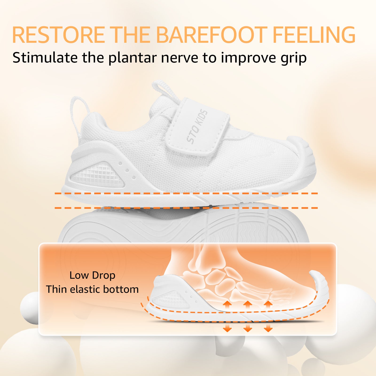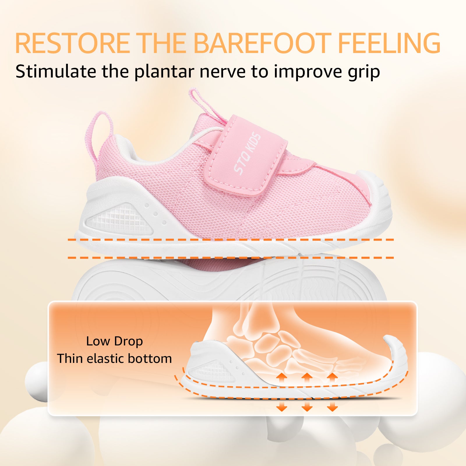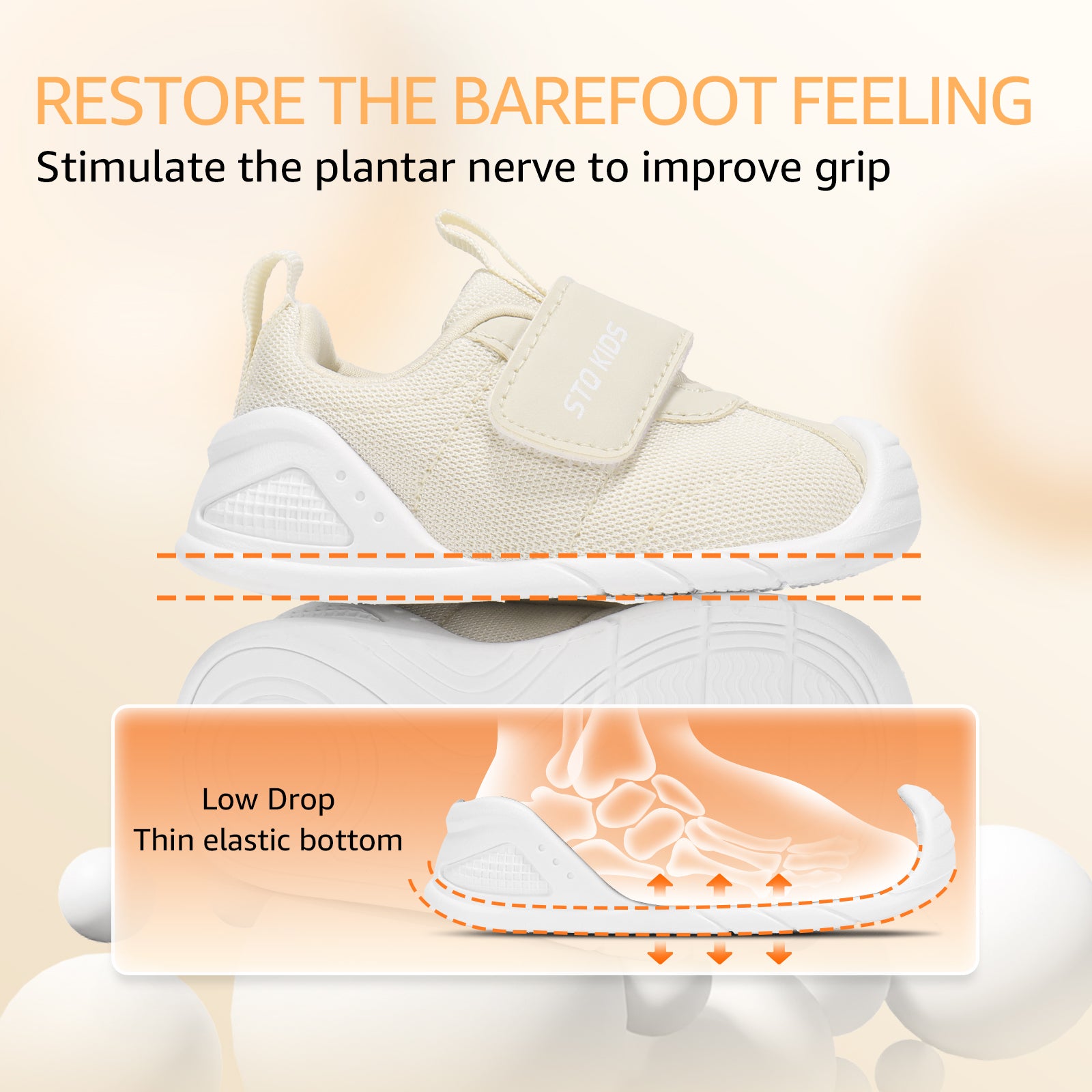 - [ Wide Toe Box ]: Designed for chubby baby feet, prevents toe squeezing and supports natural growth. Reinforced toe cap protects little toes during tumbles, against bumps during crawling and toddling. Zero drop sole, barefoot walking, feel natural steps